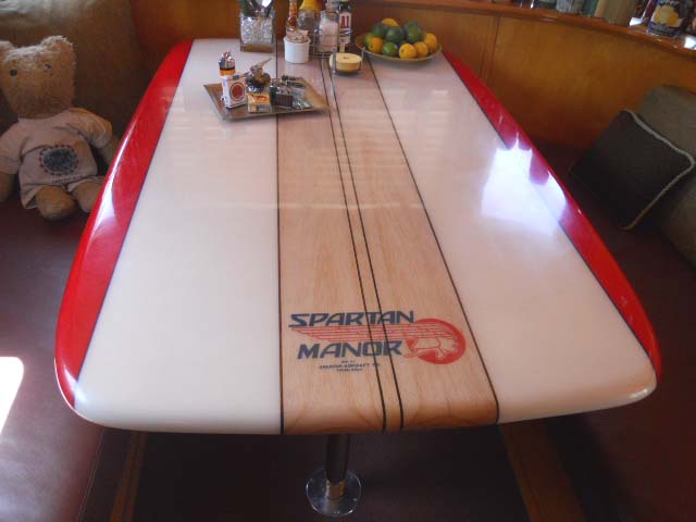 1948 Spartan Manor, surfboard dining table!
